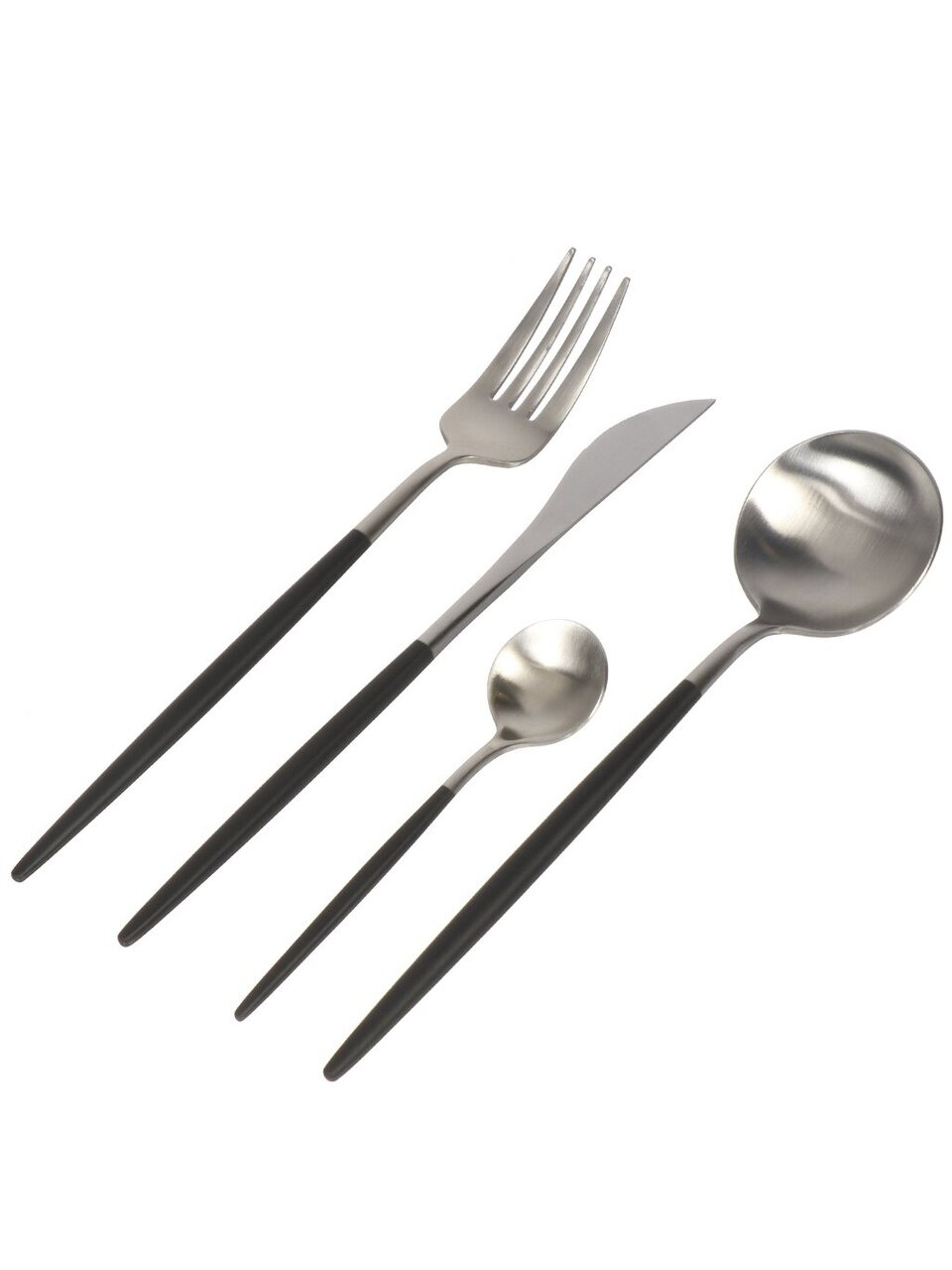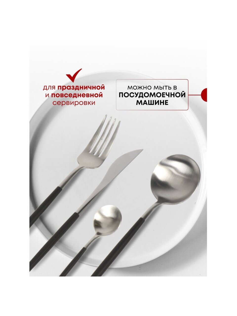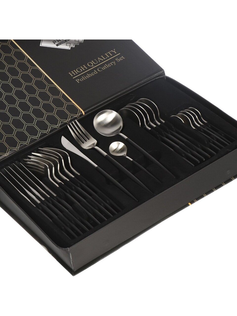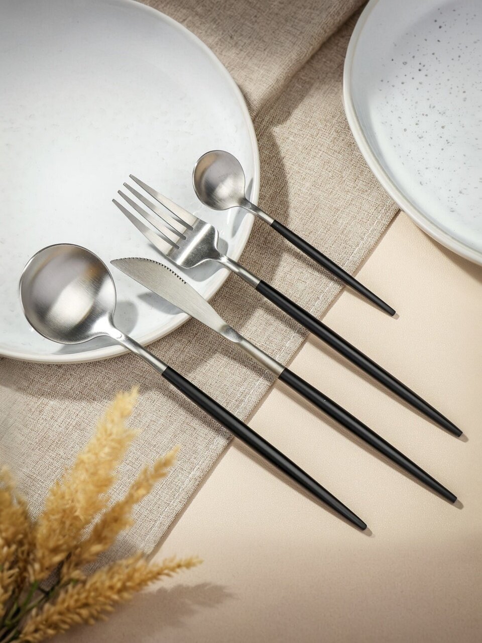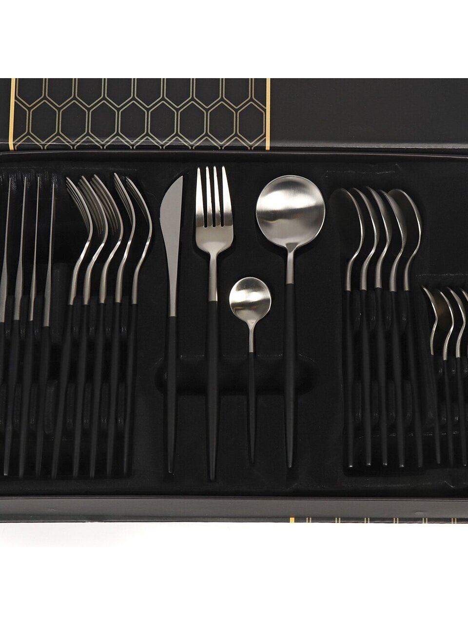 Набор столовых приборов из нержавеющей стали на 6 персон: стильный подарок в черной гамме, долговечность и универсальность для любого случая.