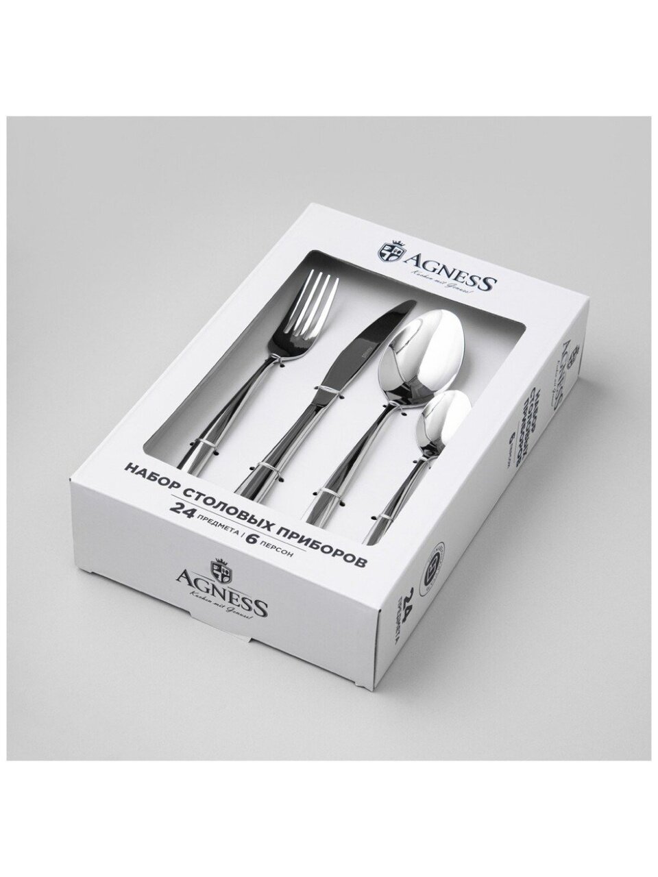 Премиальный набор столовых приборов Agness Fiore на 6 персон — 24 предмета из нержавеющей стали в подарочной упаковке. Идеальный подарок и стиль для вашего стола.
