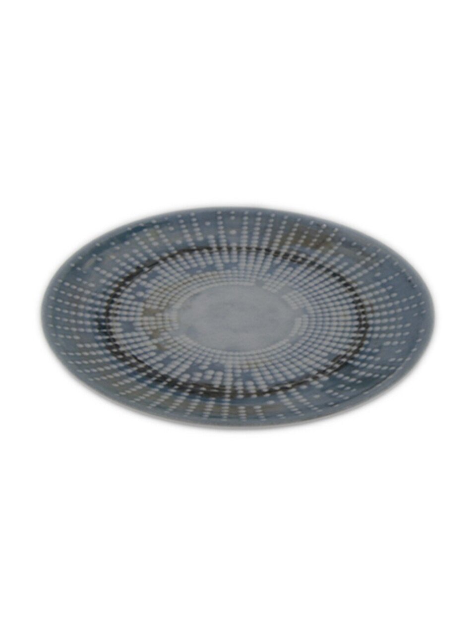 Диаметр тарелки — 20 см, материал — фарфор, форма — круглая, цвет — серый с узором, можно использовать в СВЧ и мыть в посудомоечной машине.