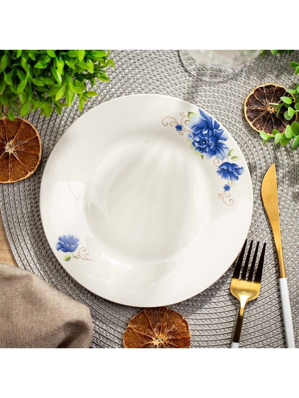 Десертная тарелка Daniks Мэджик Блю 19 см – изысканная керамика с цветочным рисунком для стильной сервировки, подходит для микроволновки и посудомоечной машины.