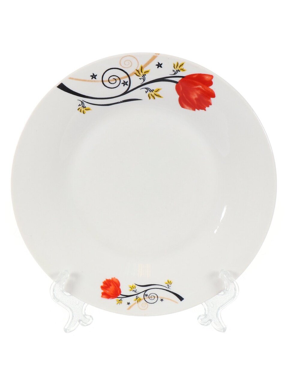 Тарелка десертная Daniks «Красный Тюльпан», 19 см: стильная керамика с цветочным рисунком для сервировки дома, дачи и подарка — безопасно для СВЧ и посудомоечной машины.
