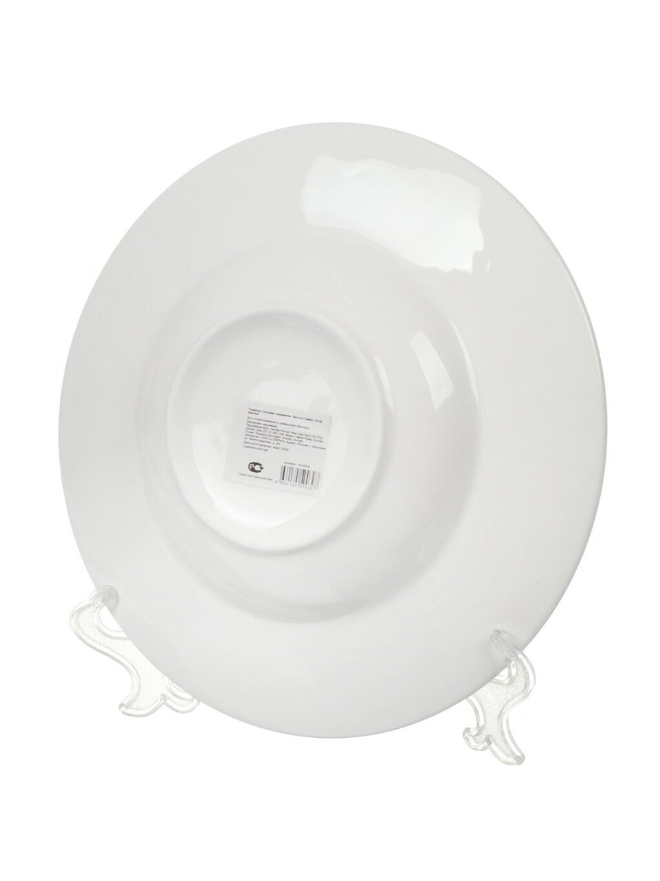 Тарелка выполнена из керамики, имеет белый цвет и однотонную поверхность без рисунка — идеально для минималистичной сервировки.