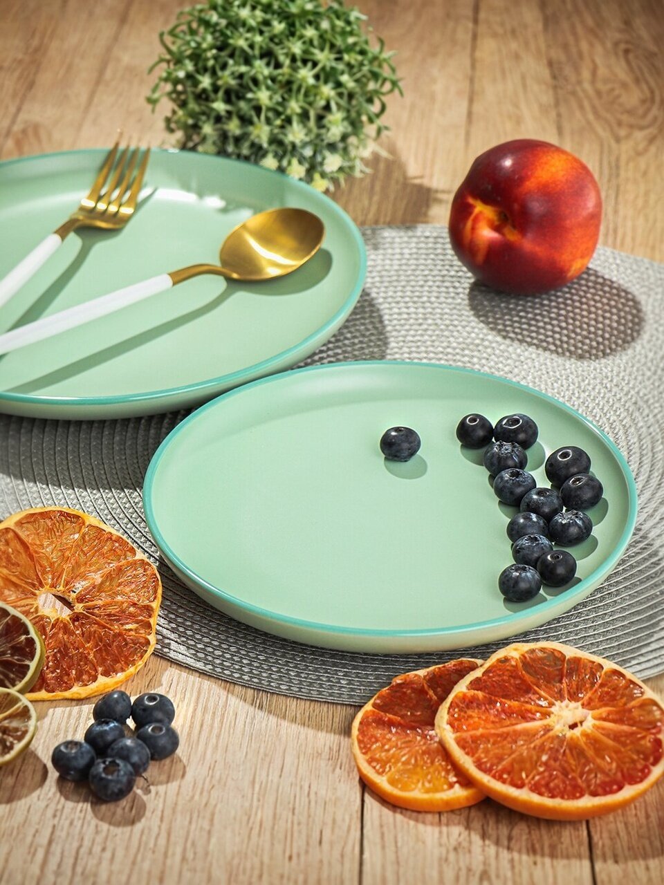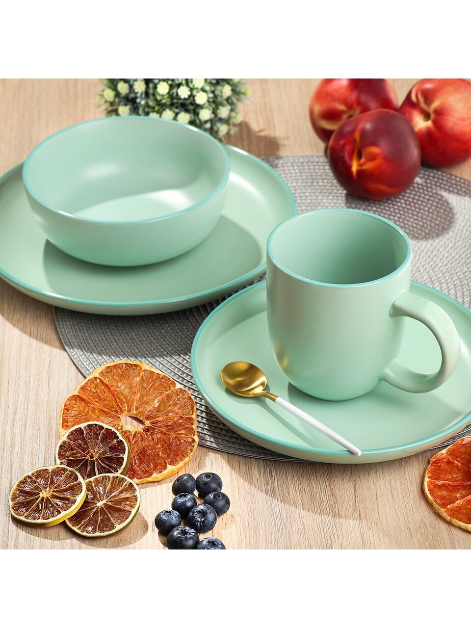 - Трендовый мятный цвет и лаконичный дизайн — выделяет сервировку и создает атмосферу уюта