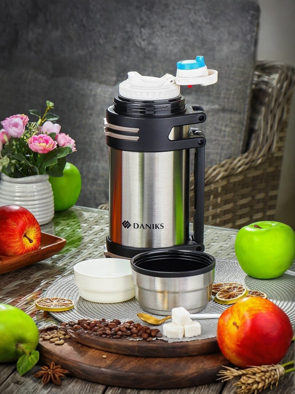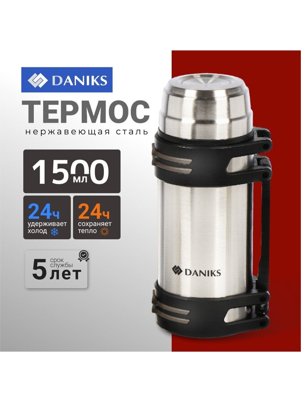 Термос Daniks 1.5 л из нержавеющей стали — сохраняет напитки горячими и холодными до 24 часов, идеален для дома, города и путешествий.