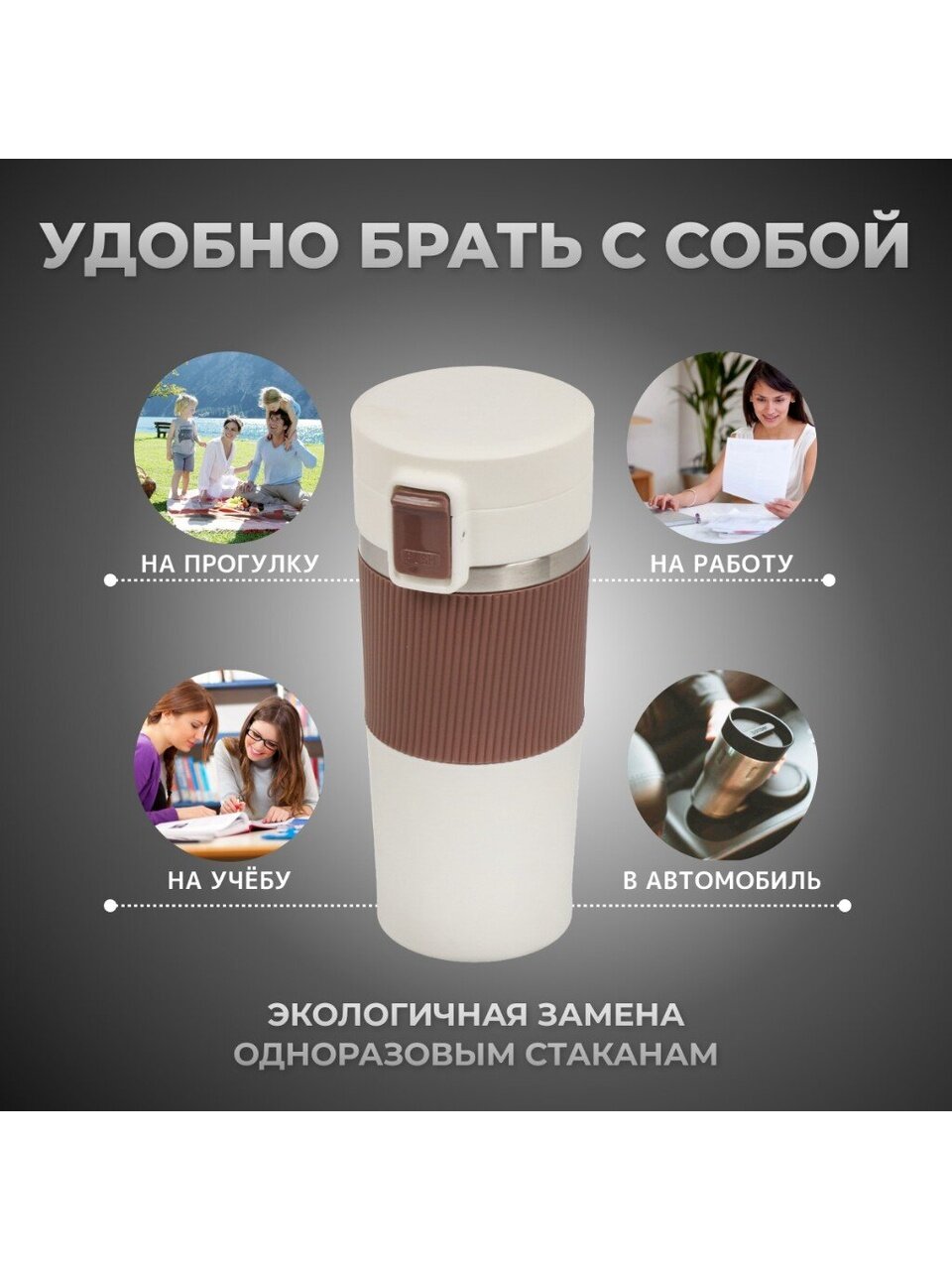 Термокружка Daniks 0,43 л: стильный выбор для города, авто и похода — держит тепло и холод до 2 часов, не проливается, легко моется. Успей купить выгодно!
