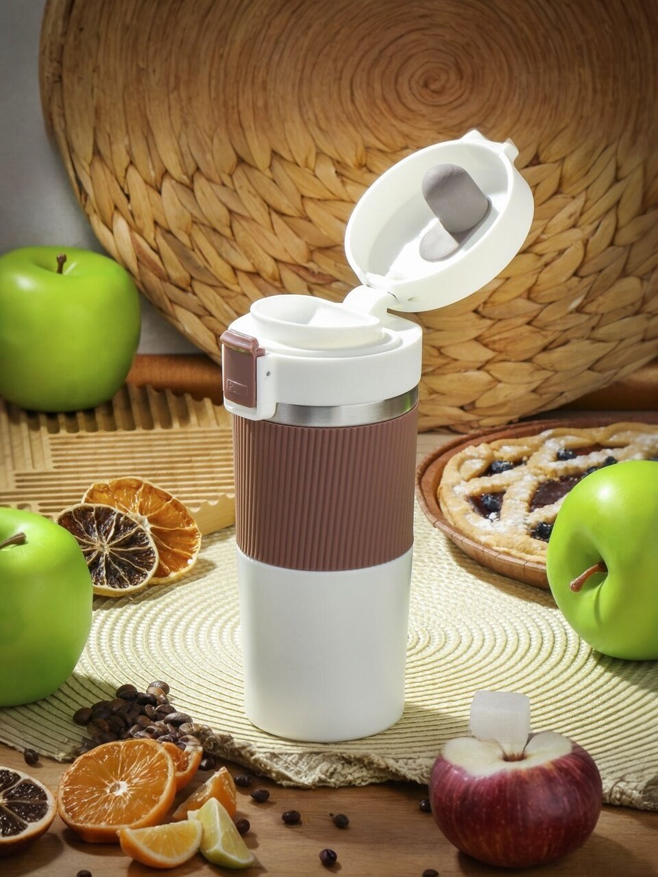 Термокружка сохраняет тепло и холод до 2 часов благодаря двойным стенкам из нержавеющей стали. Это оптимально для поездок, офиса и прогулок.