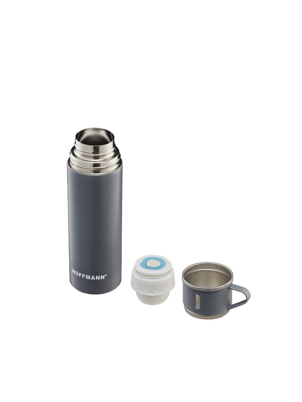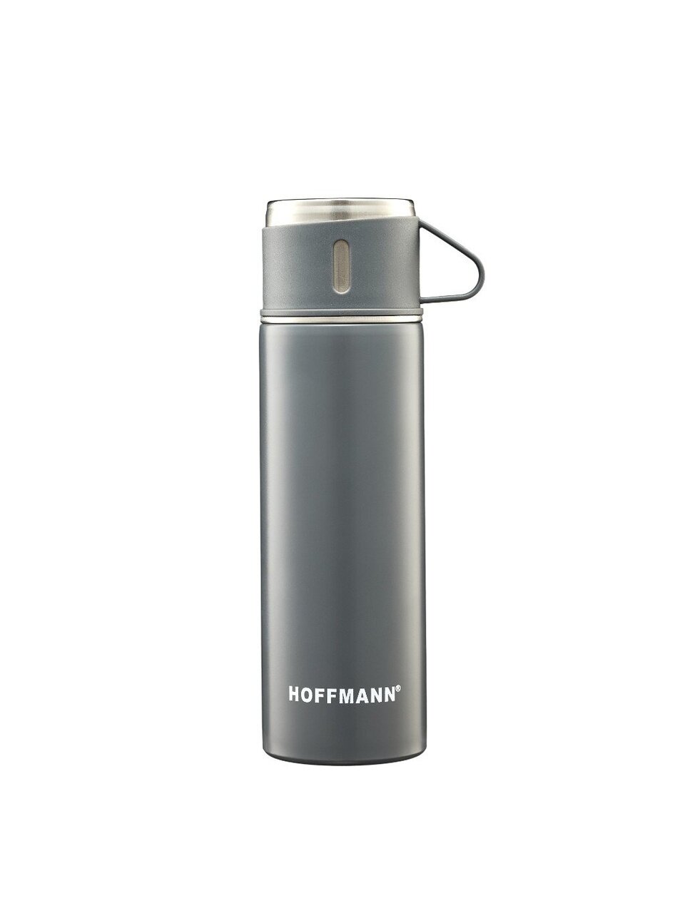Термос Hoffmann 0.45 л из нержавеющей стали с кружкой — держит напитки горячими до 12 часов, компактен, идеален для города и путешествий.