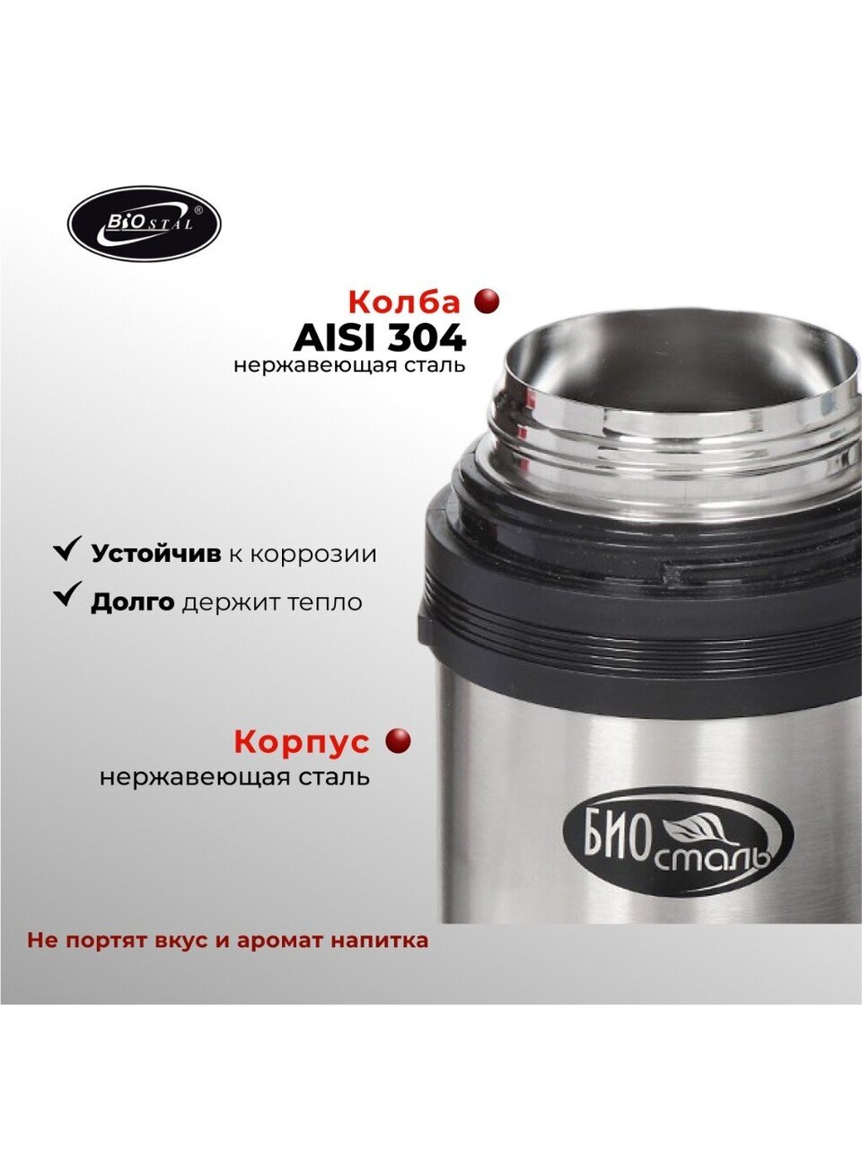 Вы можете приобрести «Термос для еды, нержавеющая сталь, 0.8 л, универсальная горловина, Biostal, колба нержавеющая сталь, NG-800-1» и другие товары в нашем интернет-магазине в Серпухове по низким ценам и с бесплатным самовывозом.