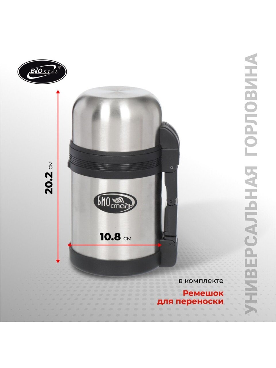 - Универсальная горловина 10.8 см — удобно накладывать и есть прямо из термоса, подходит для любых блюд.