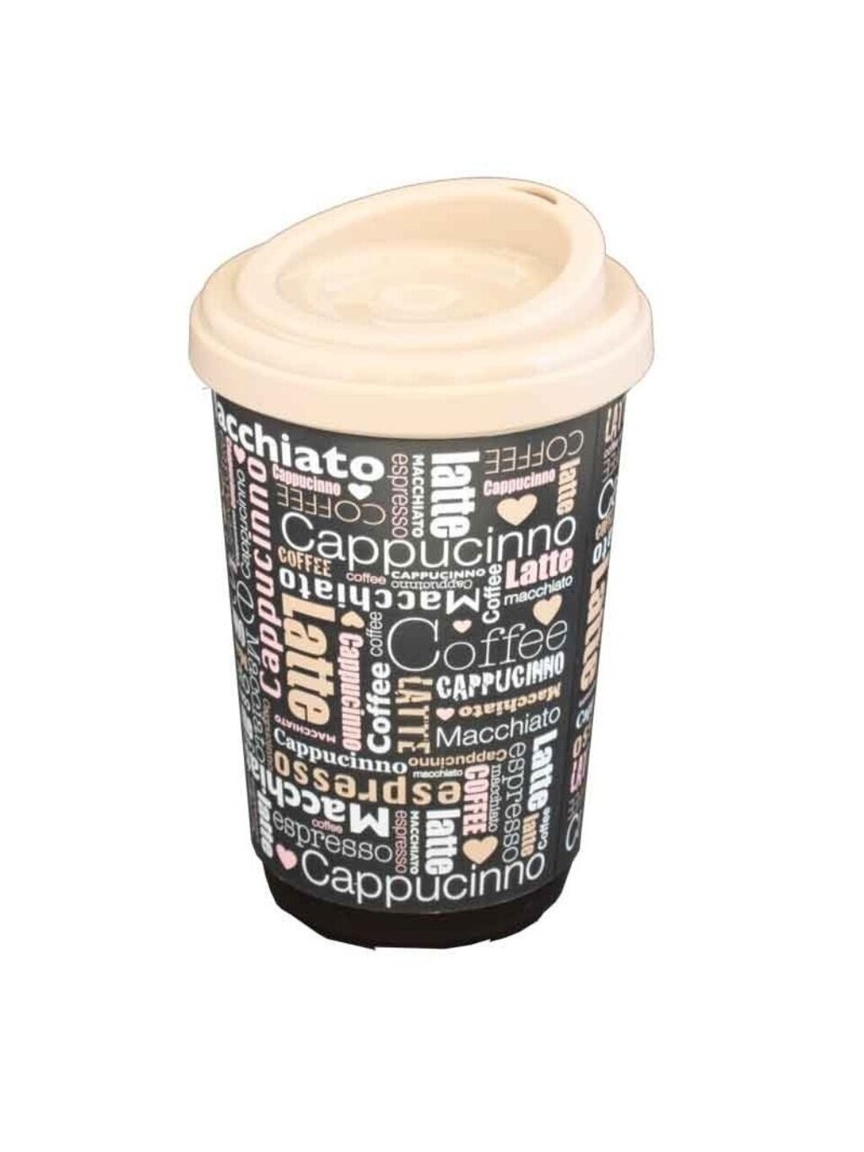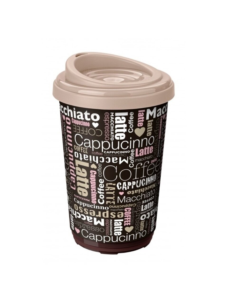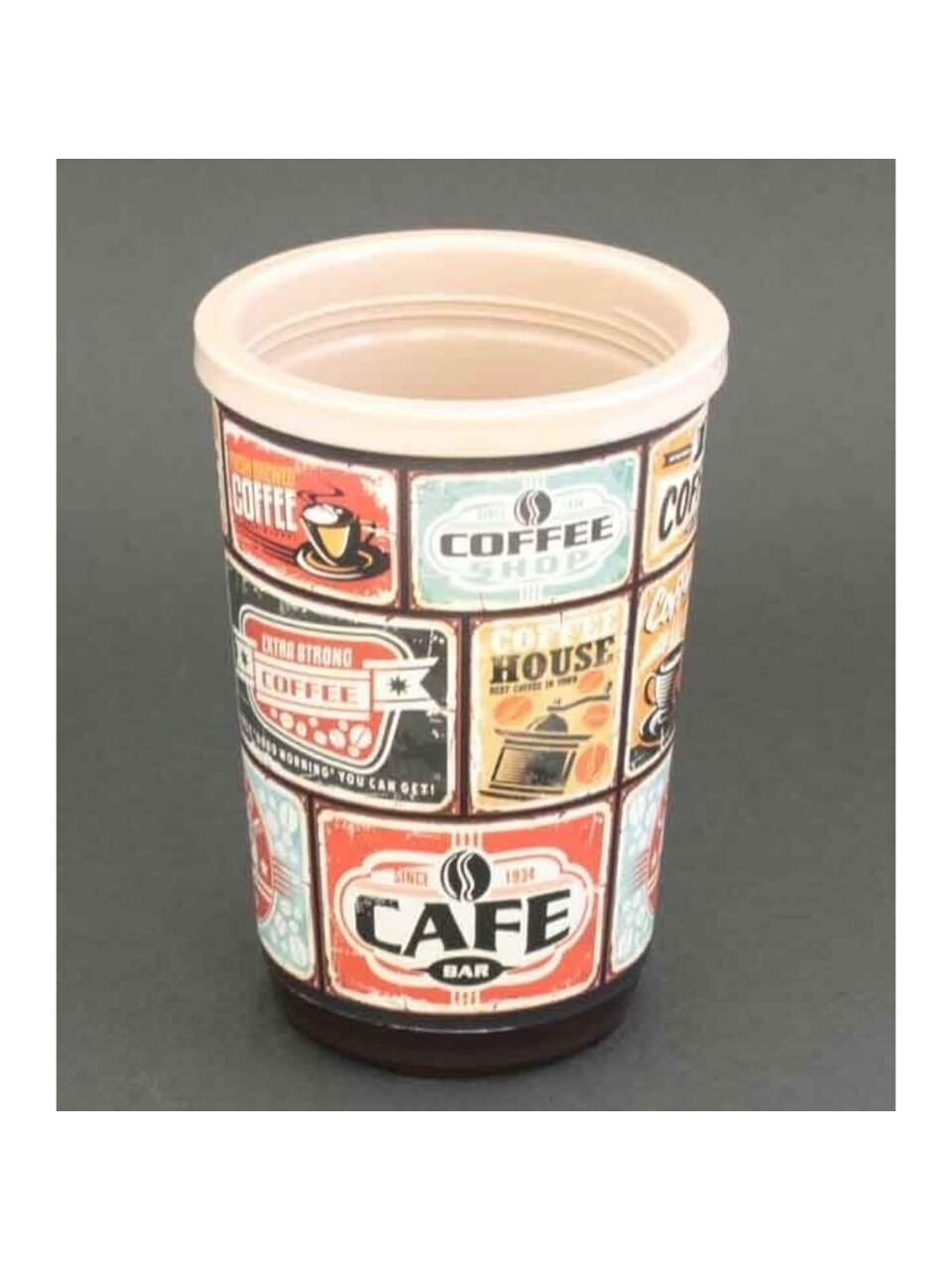 - Практичное решение для повседневного использования — пластиковая термокружка с рисунком, сохраняет температуру напитка до 2 часов.