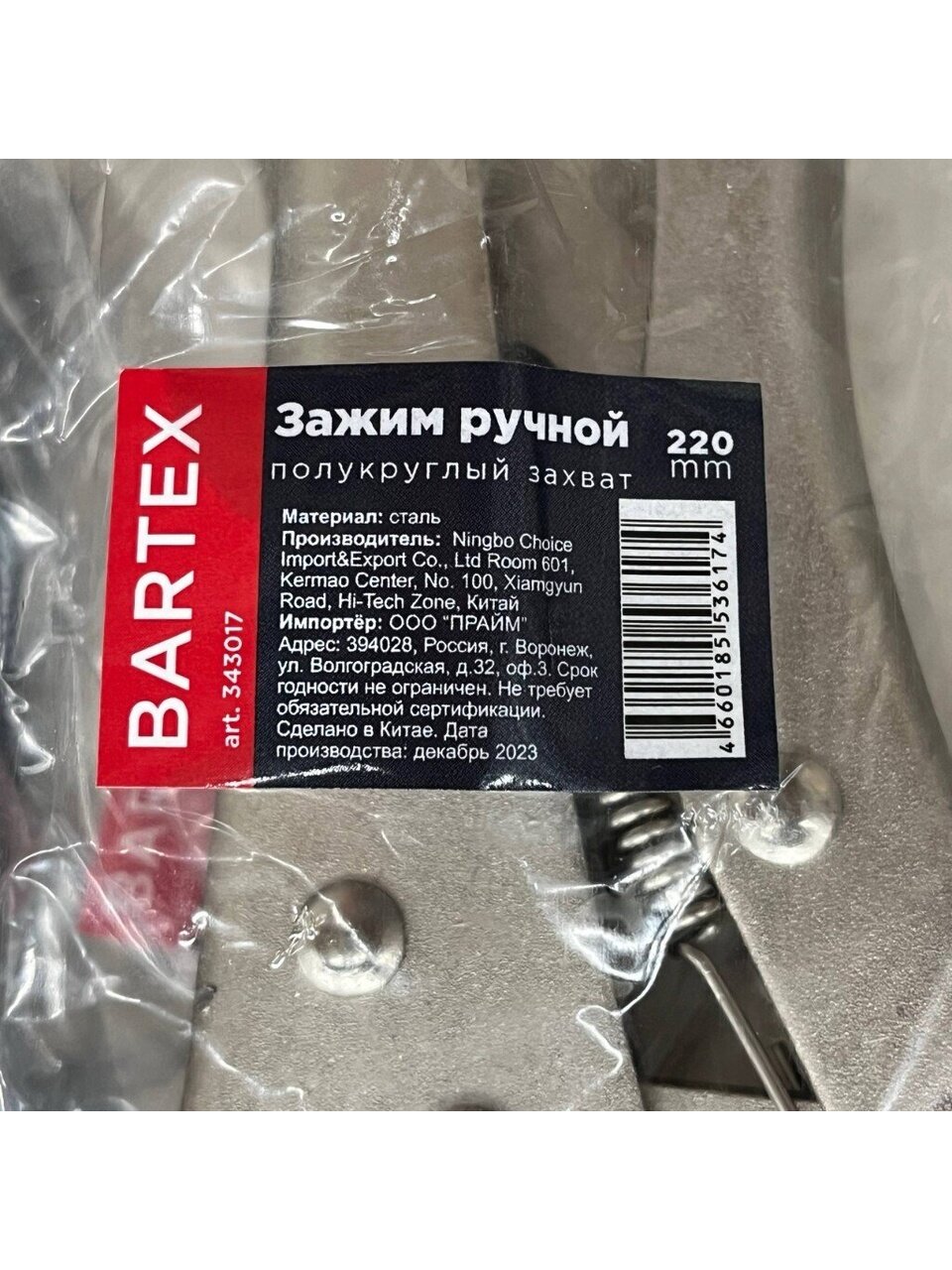 Вы можете приобрести «Зажим ручной 220 мм, полукруглый захват, Bartex, 343017» и другие товары в нашем интернет-магазине в Орле по низким ценам и с бесплатным самовывозом.