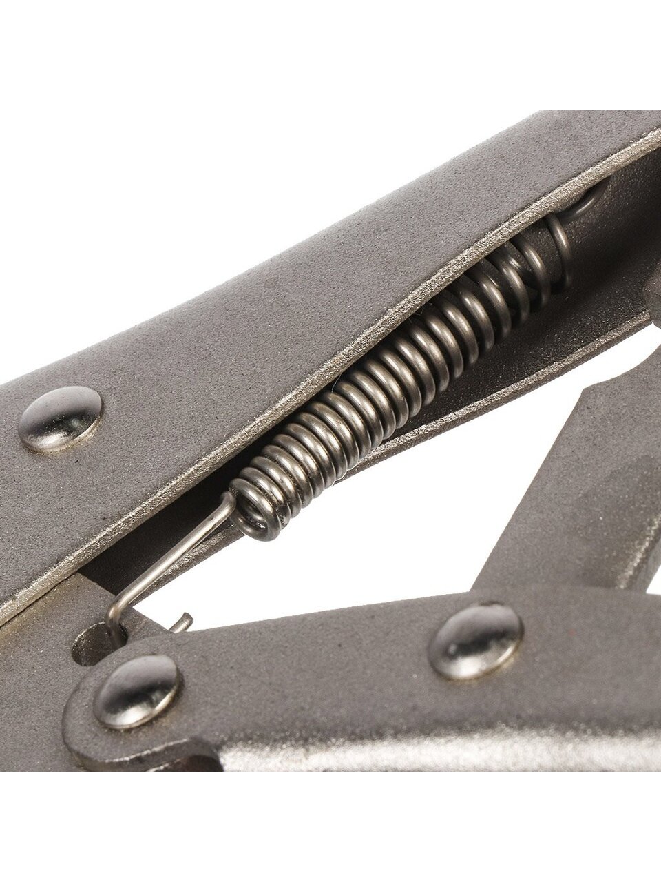 Зажим с фиксатором предназначен для фиксации разнообразных по форме предметов. Обычно целью такой фиксации является проведение слесарно-монтажных и сварочных работ.