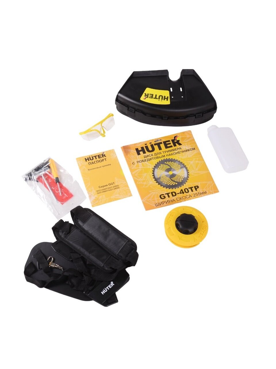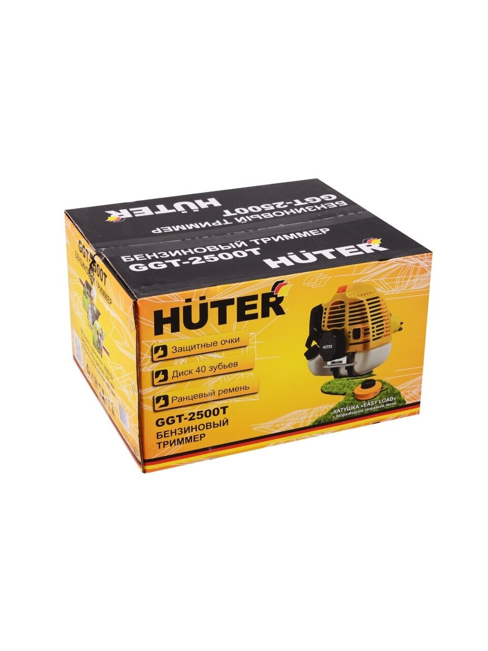 Бензиновый двигатель триммера Huter GGT-2500T способен в холостом ходу раскручивать со скоростью 9500±500 оборотов в минуту нож или леску. В данной модели используется фирменная антивибрационная система, которая дает возможность косить траву в течение длительного времени. Топливо, которое экономно использует триммер, представляет собой смесь бензина марки АИ–92 и двухтактного масла. Зажигание двигателя полностью электронное, поэтому ДВС соединён с элементами управления на рукоятке с помощью электропровода.
