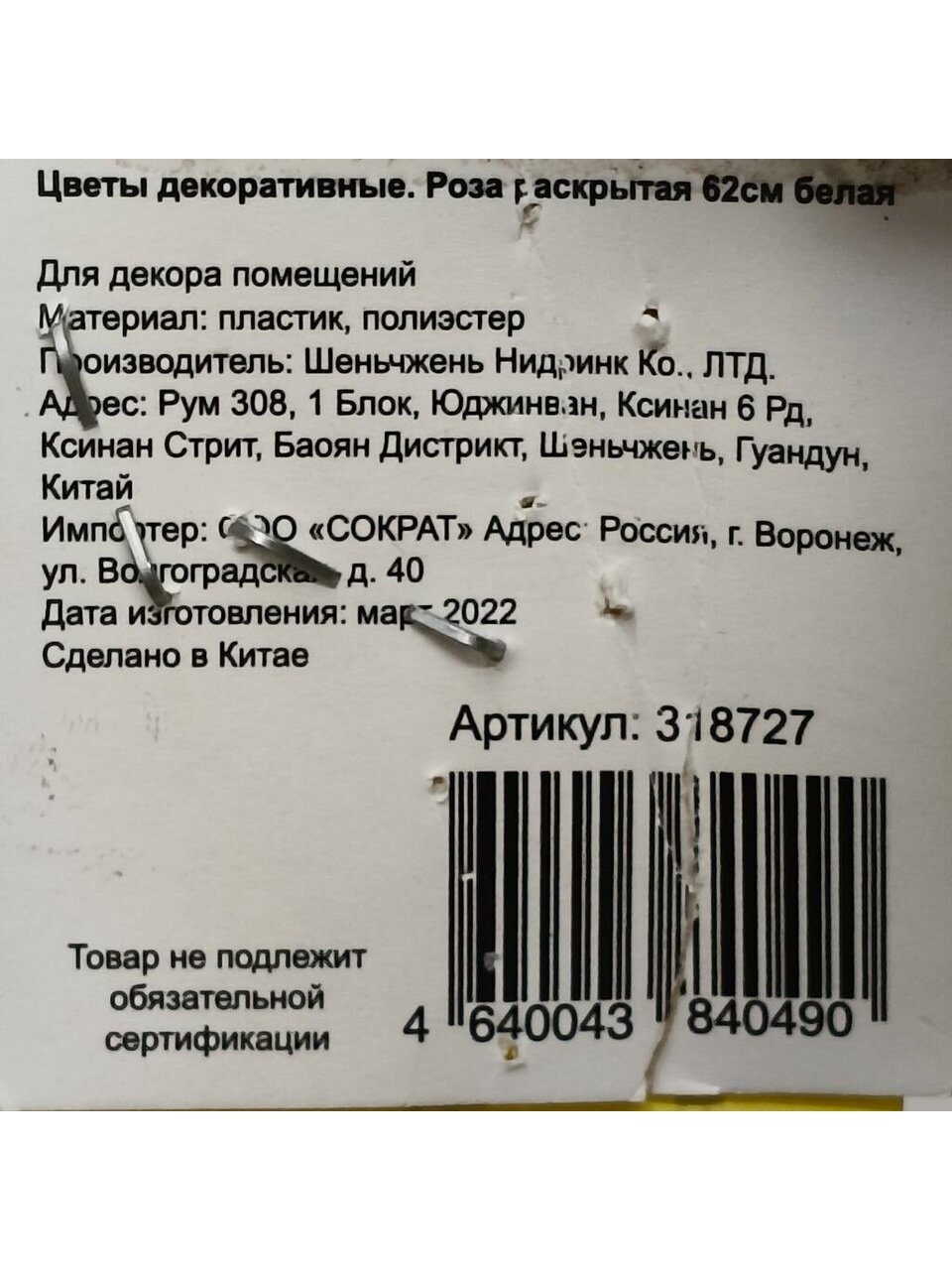 Вы можете приобрести «Цветок искусственный декоративный Роза раскрытая, 62 см, белый, Y3-1543» и другие товары в нашем интернет-магазине в Армавире по низким ценам и с бесплатным самовывозом.