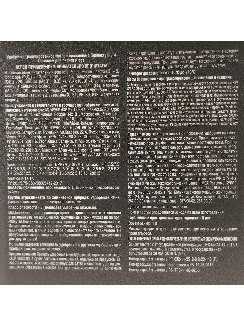 Вы можете приобрести «Удобрение для пионов и роз, пролонгированное с биодоступным кремнием, ведро, 800 г, Bona Forte» и другие товары в нашем интернет-магазине в Старом Осколе по низким ценам и с бесплатным самовывозом.