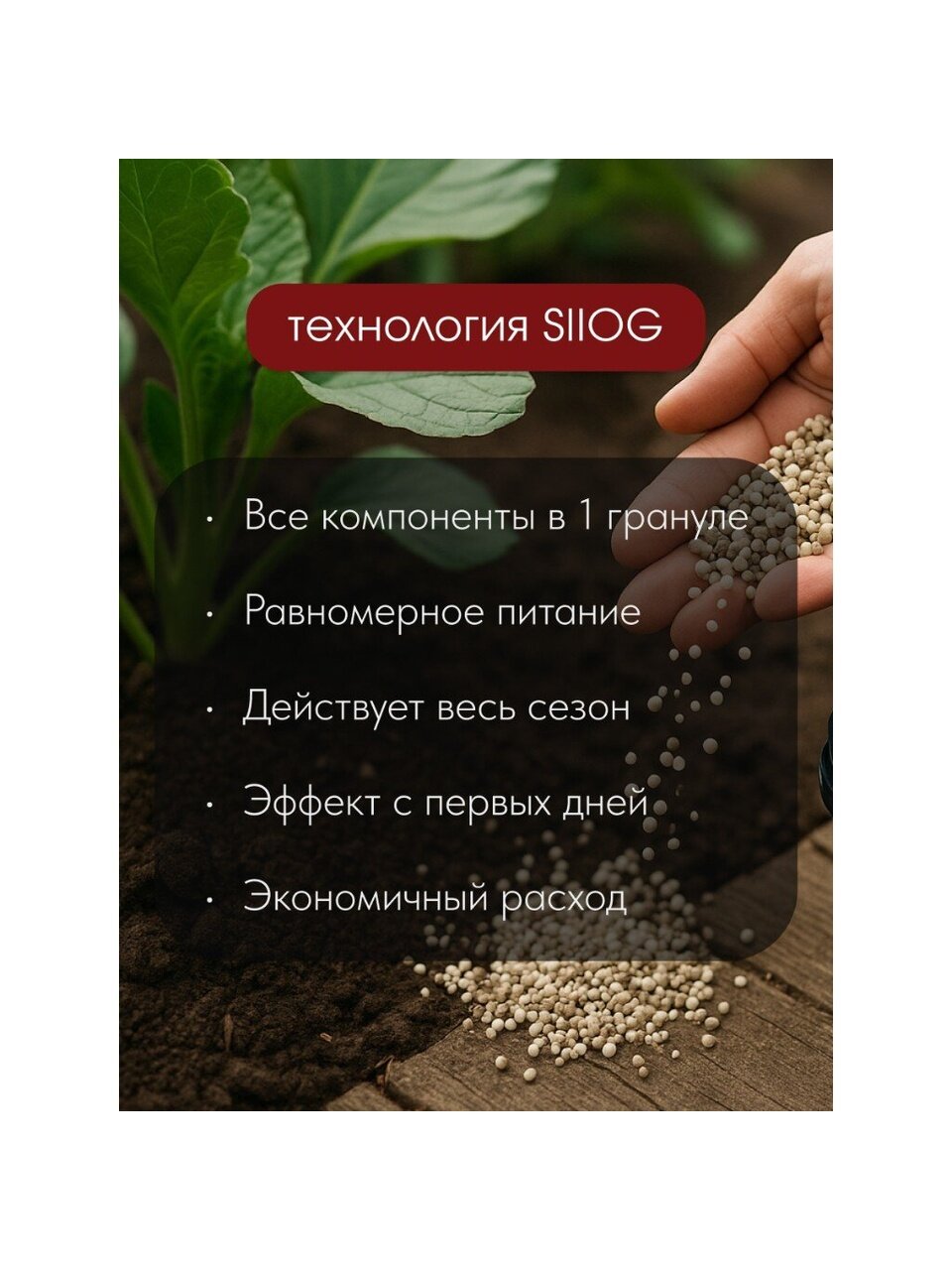 - Равномерное внесение – благодаря содержанию всех компонентов в одной грануле растение гарантированно обеспечивается Каждым элементом питания.