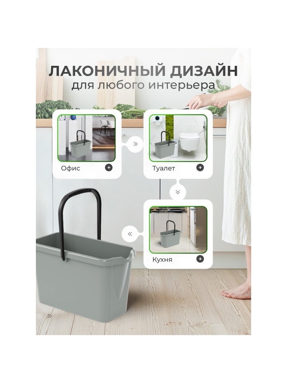 Универсальное бытовое ведро просто незаменимо в домашнем хозяйстве. Благодаря эргономичной ручке Вам будет удобно перемещать изделие: она не врезается в кожу и не доставляет дискомфорта. Само ведро очень лёгкое. Вы сможете без труда поднять его, даже полностью загрузив тару.