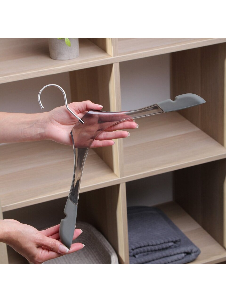 Вешалка-плечики для одежды 39х3х23.5 см – идеальное решение для аккуратного хранения одежды в шкафу. Современный дизайн и универсальный серый цвет гармонично впишутся в любой интерьер гардеробной. Прочность пластикового корпуса с металлическими элементами обеспечивает надежную фиксацию вещей и долговечность использования.