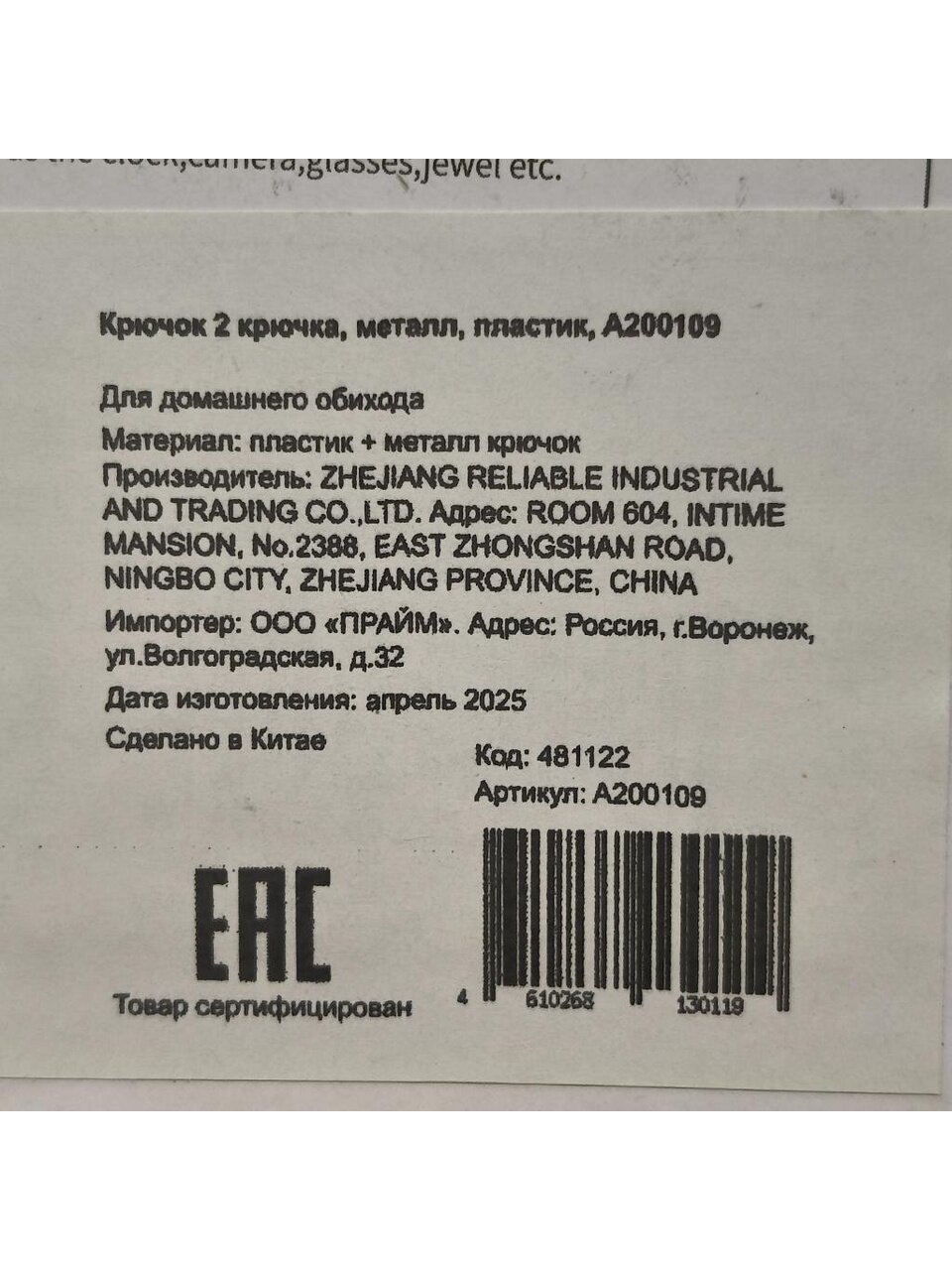 Вы можете приобрести «Крючок 2 крючка, металл, пластик, A200109» и другие товары в нашем интернет-магазине в Астрахани по низким ценам и с бесплатным самовывозом.