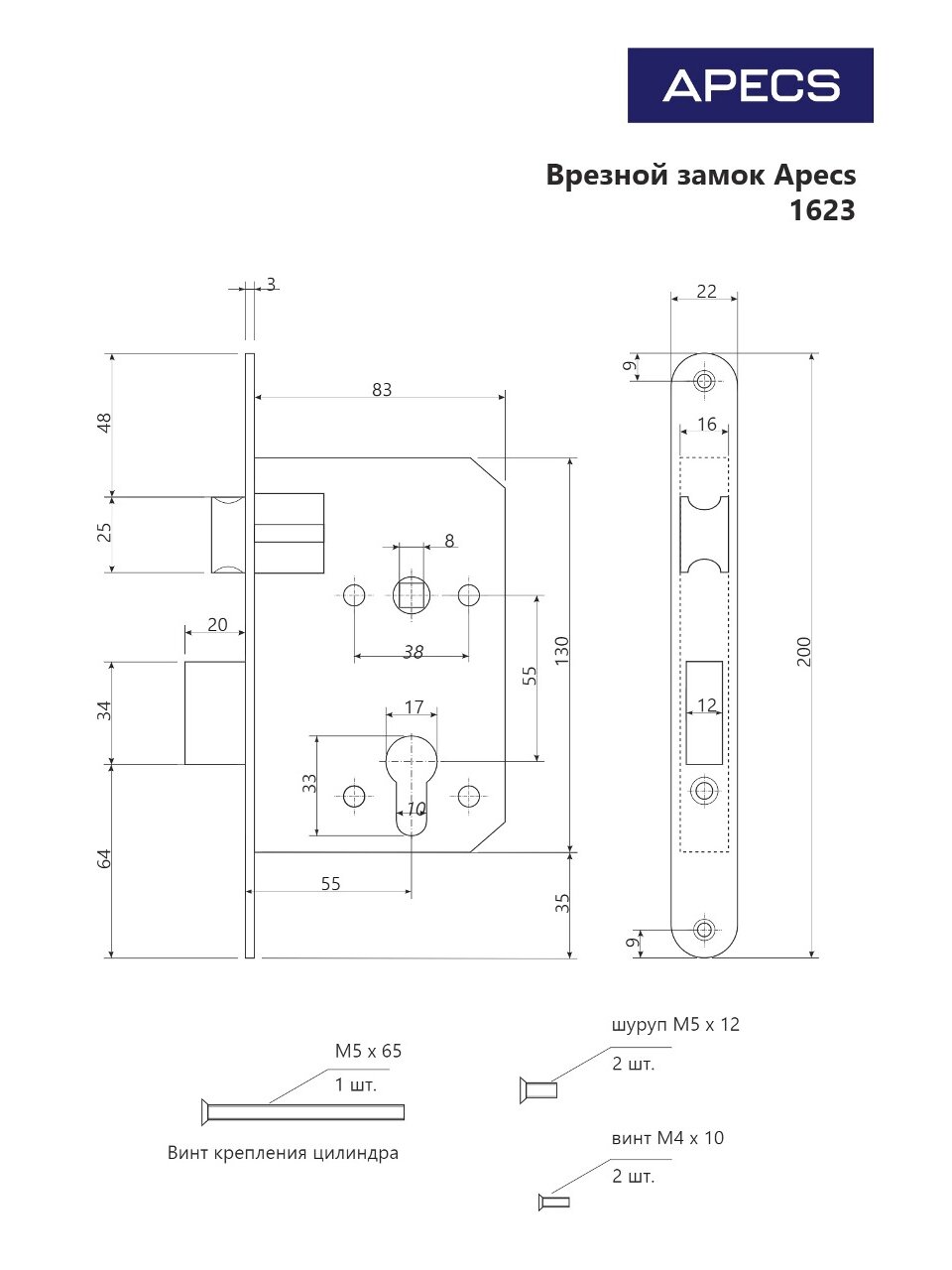 Врезной замок Apecs 1623-AB изготавливается в Китае на современном высокотехнологичном предприятии. Относится к категории эконом, но при этом имеет весьма солидные технические характеристики, что позволяется устанавливать его как на внутренних, так и на внешних дверях.