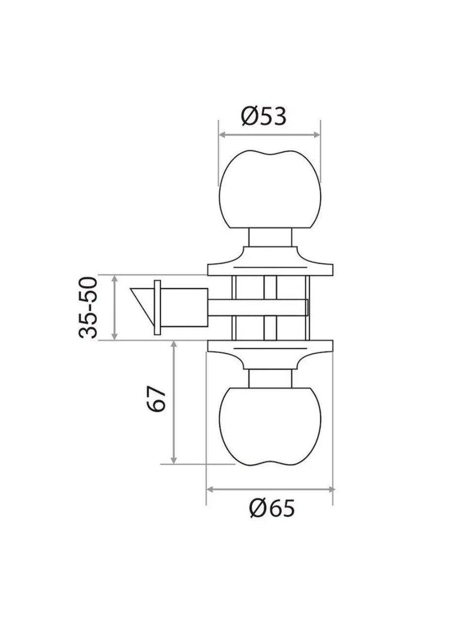 - Идеальна для установки на двери туалетов и ванных, так как позволяет запирать дверь с внутренней стороны при помощи вертушки, которая блокирует поворот кноба.